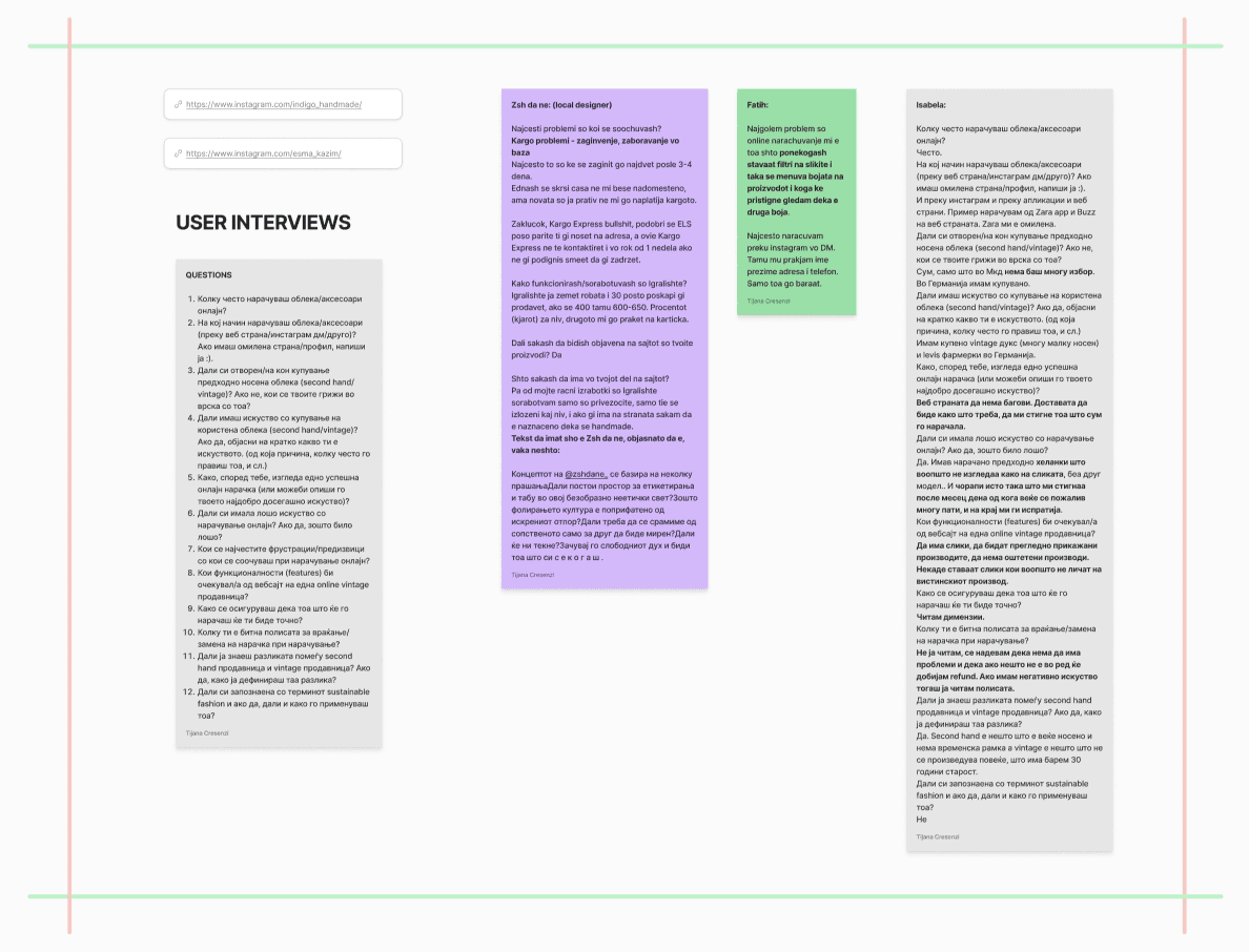 To ensure the e-commerce design would resonate with Igraliste’s audience, I conducted informal interviews with customers and users. This included understanding their frustrations with existing shopping platforms and what they look for in a vintage store.